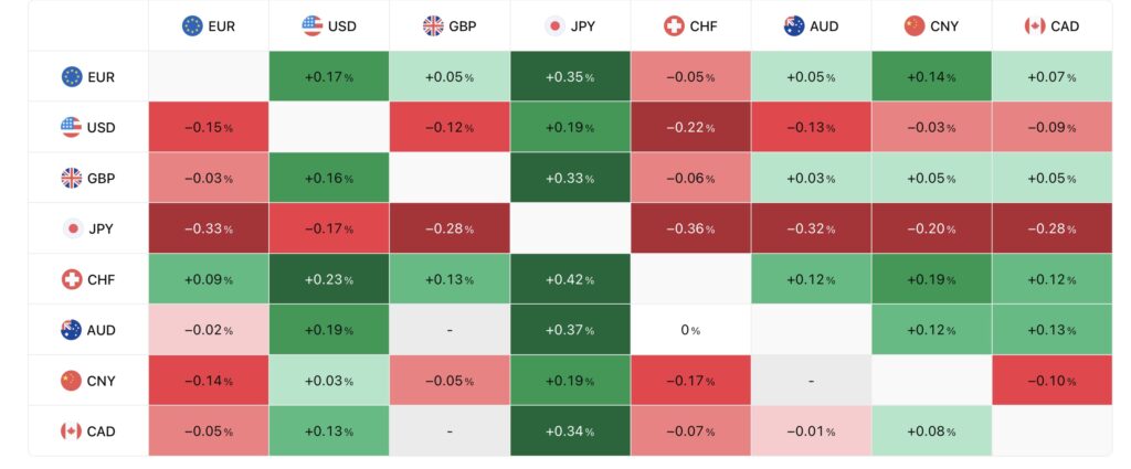 午前の主要通貨パフォーマンス(ヒートマップ分析)